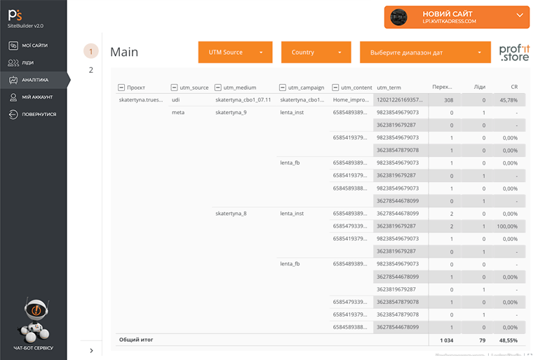 Дашборд з деталізацією структури трафіку та ключовими показниками ефективності дозволяє оцінити результативність кожного каналу. Зручний інтерфейс допомагає швидко аналізувати джерела трафіку та приймати рішення для покращення рекламних кампаній.