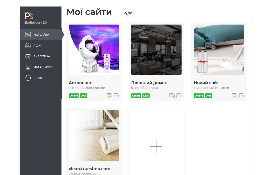 Керуйте всіма своїми лендінгами в єдиному зручному акаунті! Не потрібно перемикатися між проектами — централізований доступ дозволяє легко редагувати, публікувати та відстежувати кілька сайтів одночасно, економлячи час і зусилля для ефективного масштабування бізнесу.